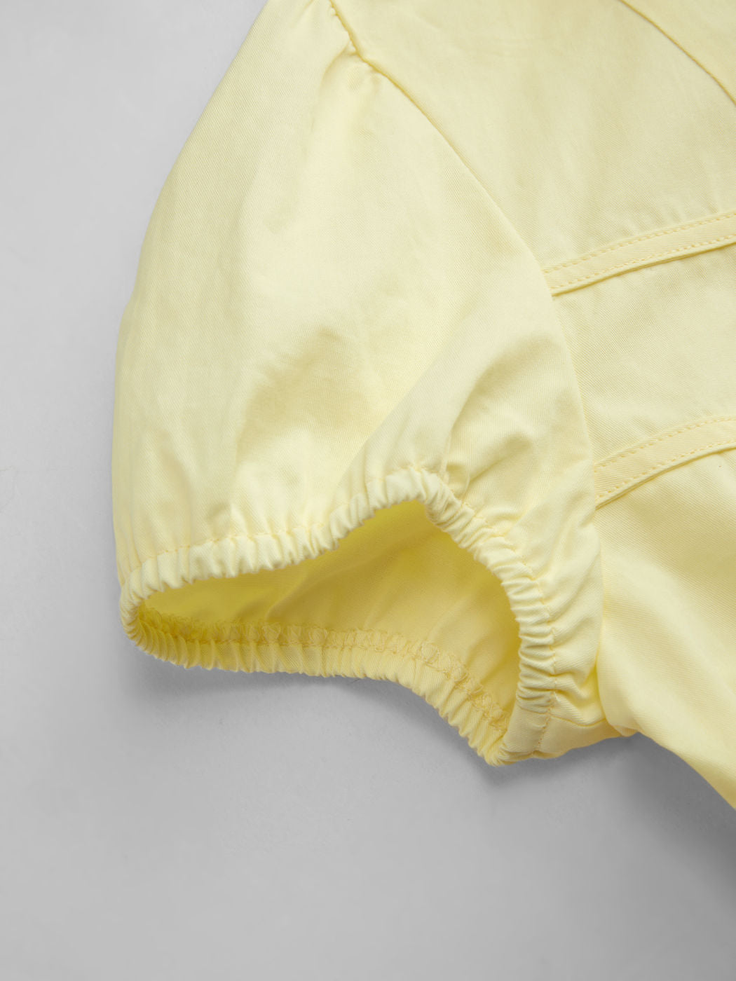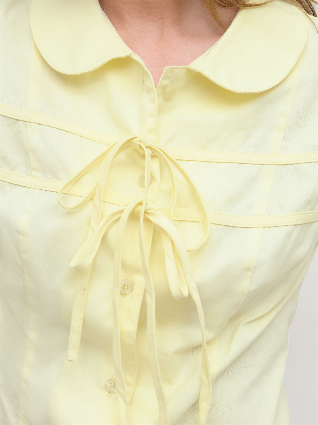 100% Cotton Peter Pan Collar Bowknot Puff Sleeve Blouse