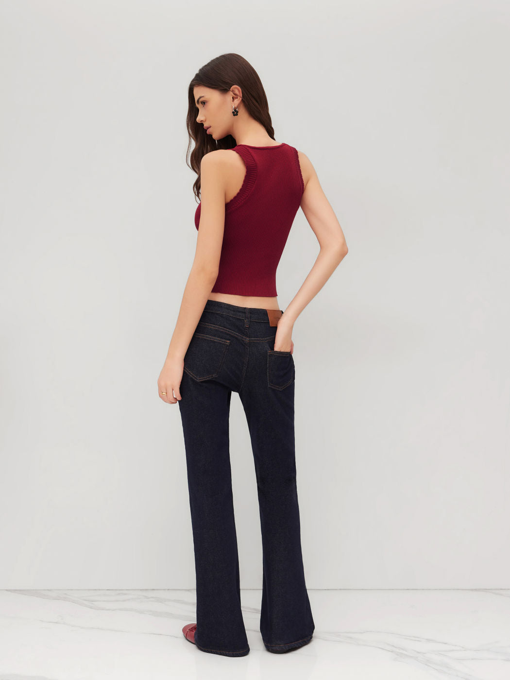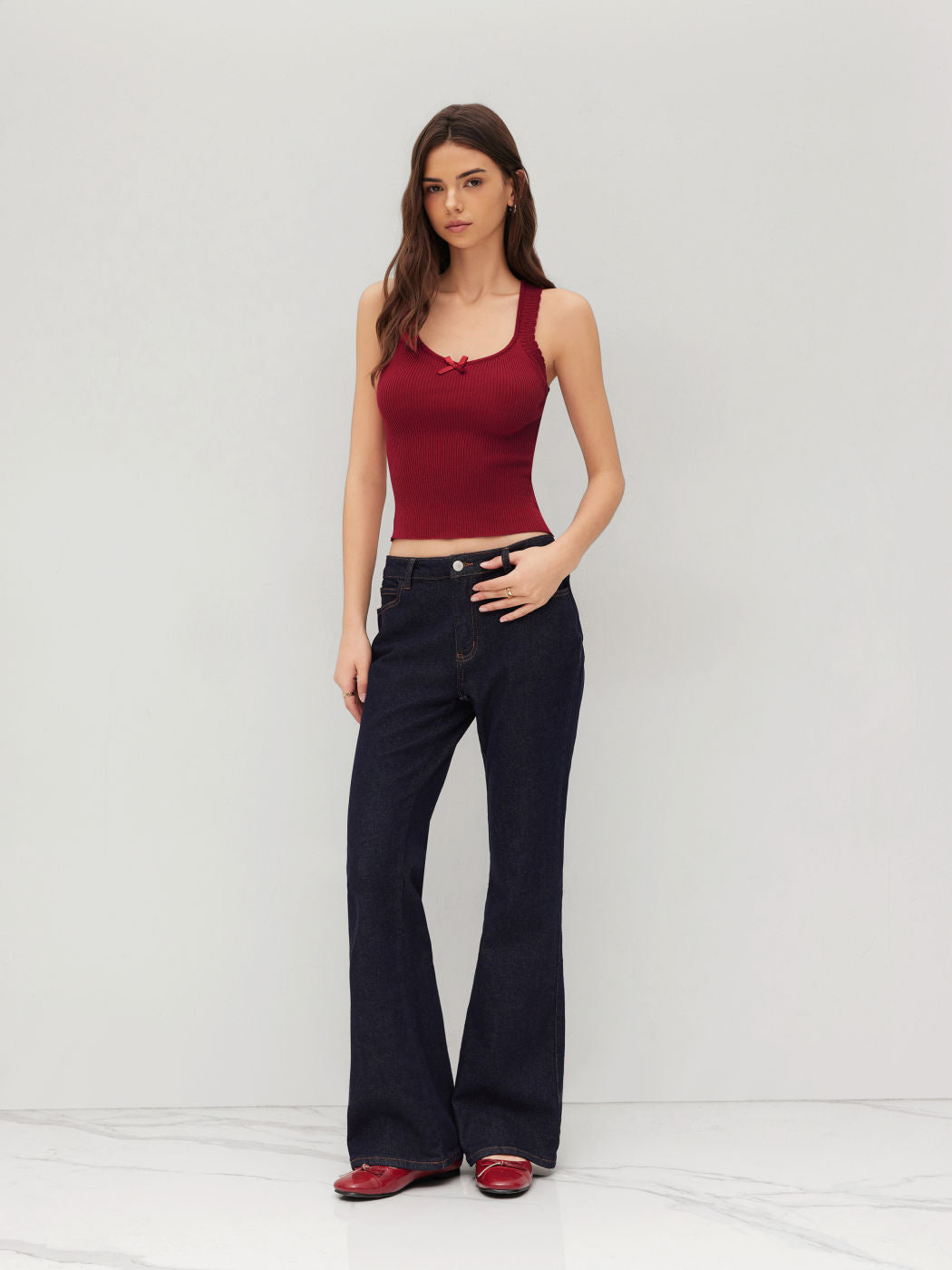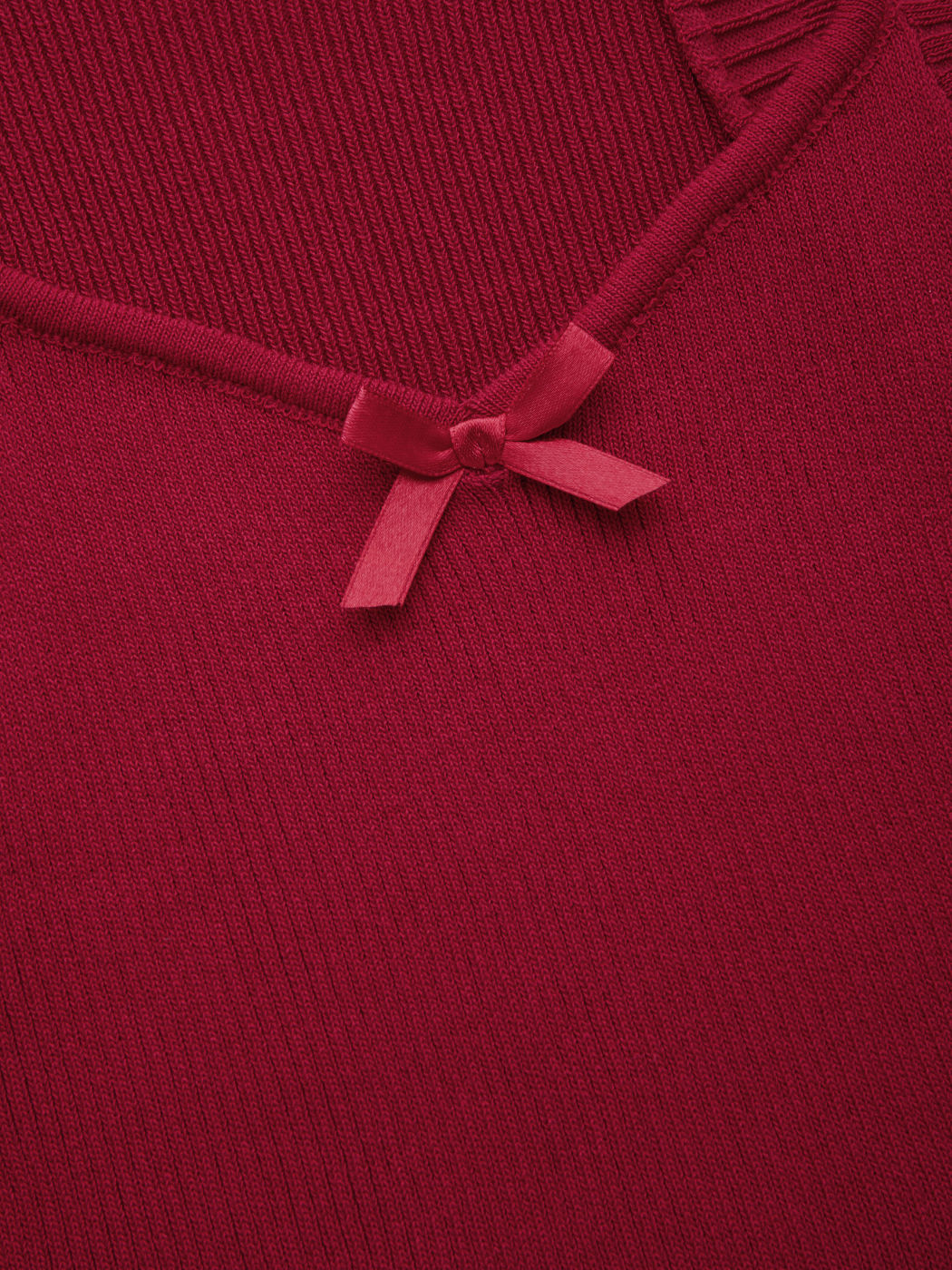 Knit U-neckline Lettuce Trim Bowknot Tank Top