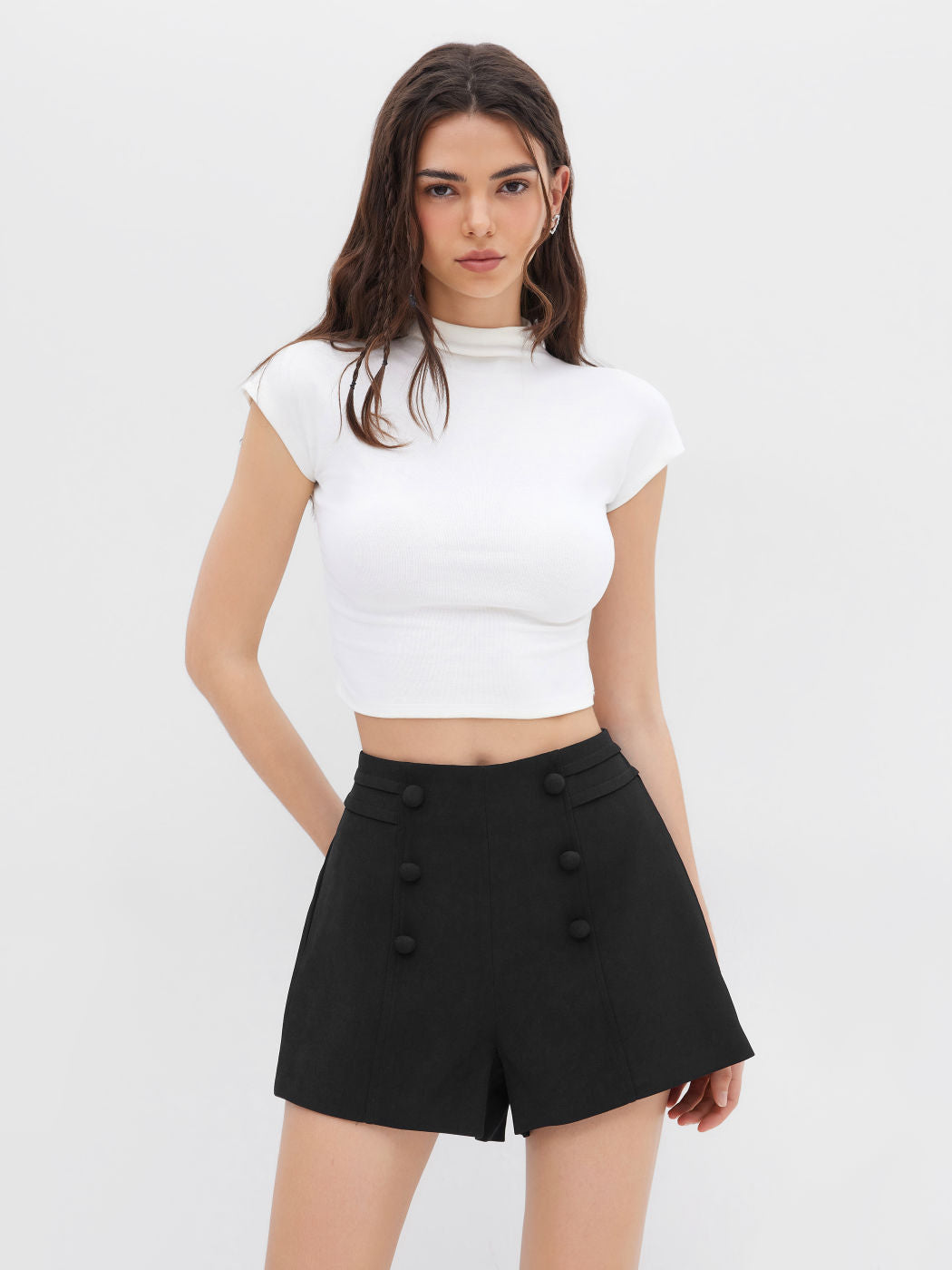 Mid Rise Double Breasted Shorts