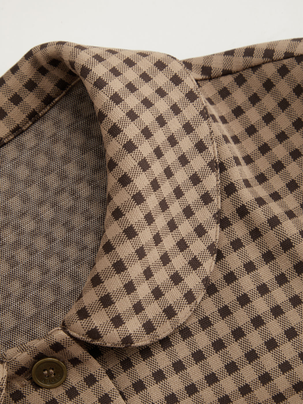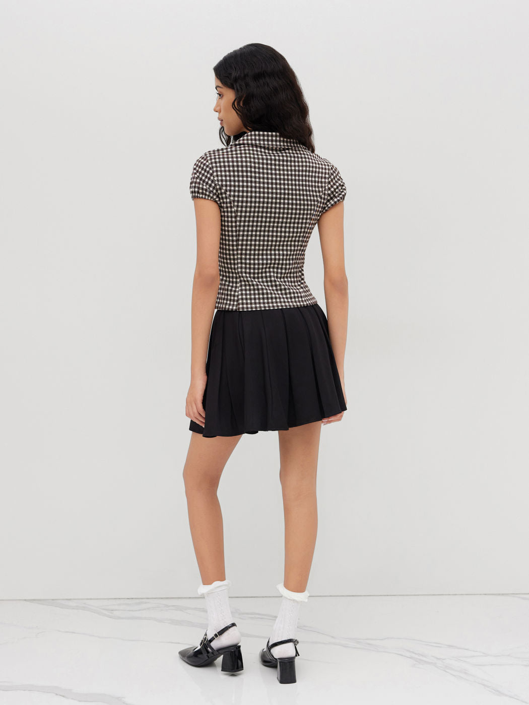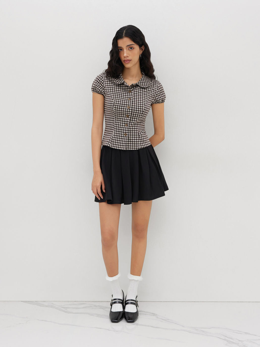 Peter Pan Collar Gingham Button Puff Sleeve Top